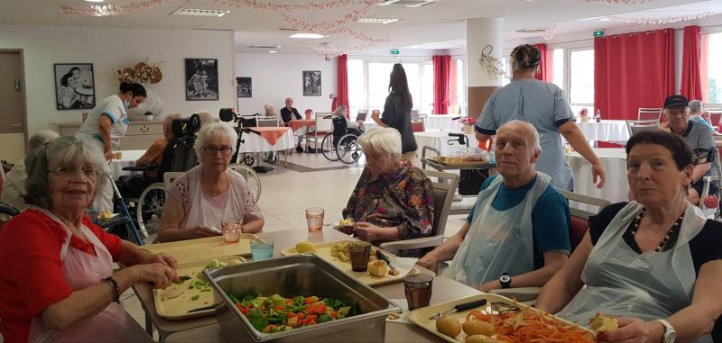 La Team cuistots de la Bastide a épluché et découpé les légumes, en vue de la préparation de la soupe servie au dîner, tout en écoutant de la musique, un bon moment comme à la maison !