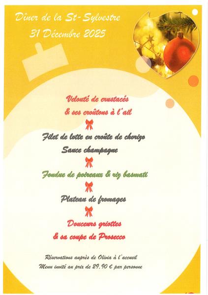 N'hésitez pas à réserver vos places auprès de Olivia, les repas sont au tarif de 29,90 € par personne boissons incluses