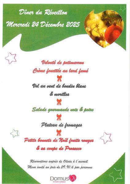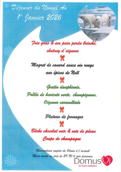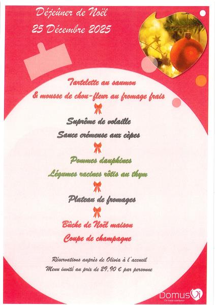 C'est avec plaisir que nous vous invitons si vous le désirez à venir accompagner vos proches à l'un des repas de fête qui arrive à grands pas
