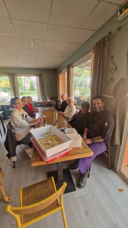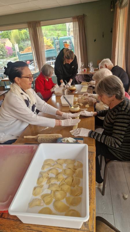 Les résidents ont vécu une belle expérience culinaire en participant à la confection de ravioles maison, accompagnés par le chef. Chacun a pu mettre la main à la pâte, découvrir les gestes et participer activement à la préparation.