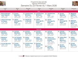 La Bastide du Moulin > Actualités > La semaine prochaine La semaine prochaine Publiée le 17/02/2026 Chères familles, Voici les plannings d'animations et les menus de la semaine du 23 février au 1er mars 2026