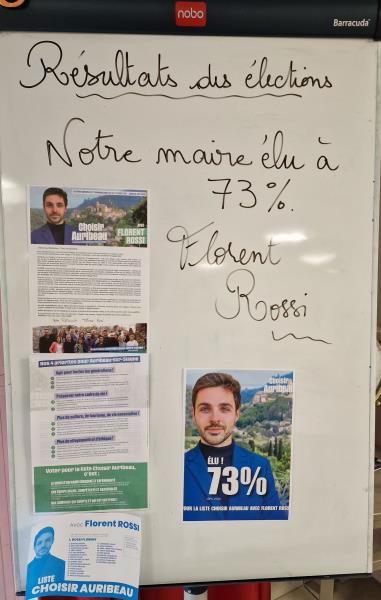 Le 16 mars, j’ai ensuite présenté aux résidents notre nouveau Maire d’Auribeau-sur-Siagne, Monsieur Florent Rossi. Les résidents ont été ravis de découvrir les résultats, d’autant plus qu’ils connaissent déjà Monsieur Rossi, qui était venu l’an passé, accompagné des jeunes du Conseil municipal, partager un pique-nique avec eux.