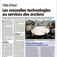 Publiée le 25/10/2021Le Journal local Nice Matin parle de notre EHPAD dans l'édition de Grasse publiée ce jour ! Nous avons en effet reçu notre correspondant local pour un reportage sur les dernières technologies innovantes dont notre établissement a pu faire l'acquisition en remportant un Trophée dans le cadre du projet Smartdeal la [...] Lire la suite