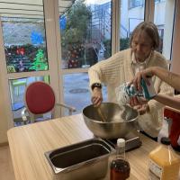 Publiée le 27/01/2021Les résidentes de l'Unité de vie Le Jardin des rêves s'activent dans la bonne humeur pour préparer de délicieux cookies en vue de la pause gourmande de cet après-midi. Un air de gourmandise s'affiche sur le doux visage de nos pâtissières du jour ! Lire la suite