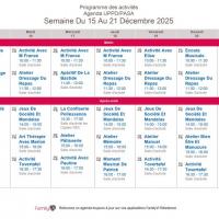 Publiée le 10/12/2025Chères familles, Voici les plannings d'animations et les menus de la semaine du 15 au 21 décembre 2025 Lire la suite