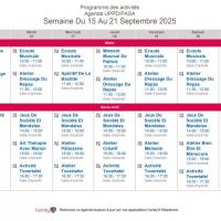 Publiée le 11/09/2025Chères familles, Voici les plannings d'animations et les menus de la semaine du 15 au 21 septembre 2025 Lire la suite