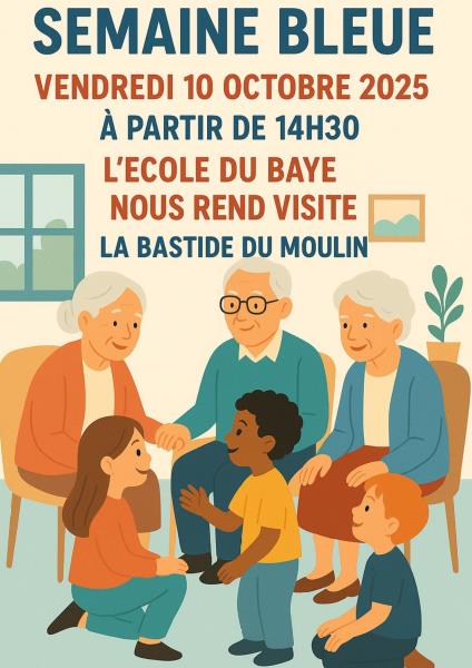 Dans le cadre de la Semaine Bleue, nous aurons le plaisir d’accueillir ce vendredi 10 octobre 2025 à partir de 14h30 deux classes de CE1 de l’école du Baye.