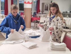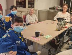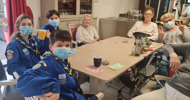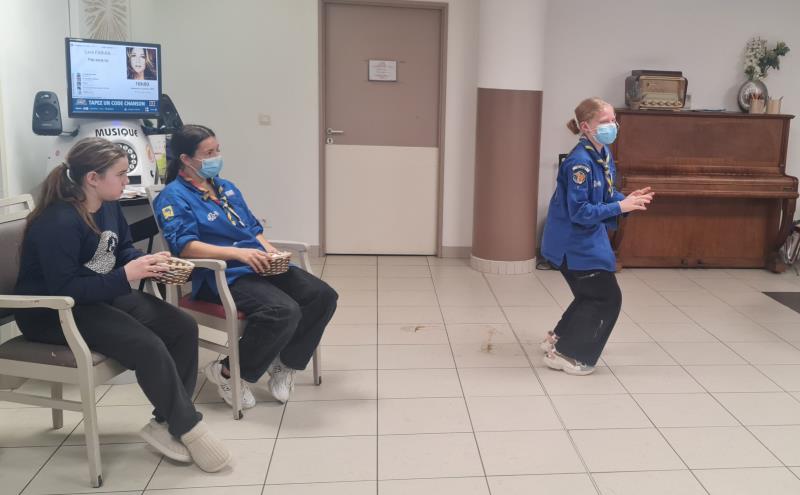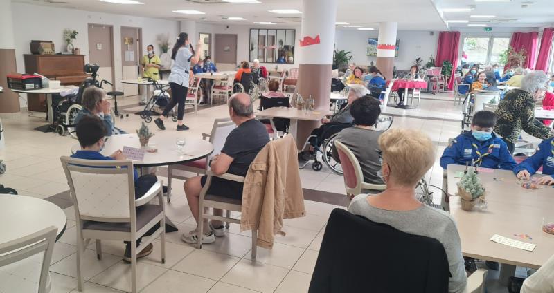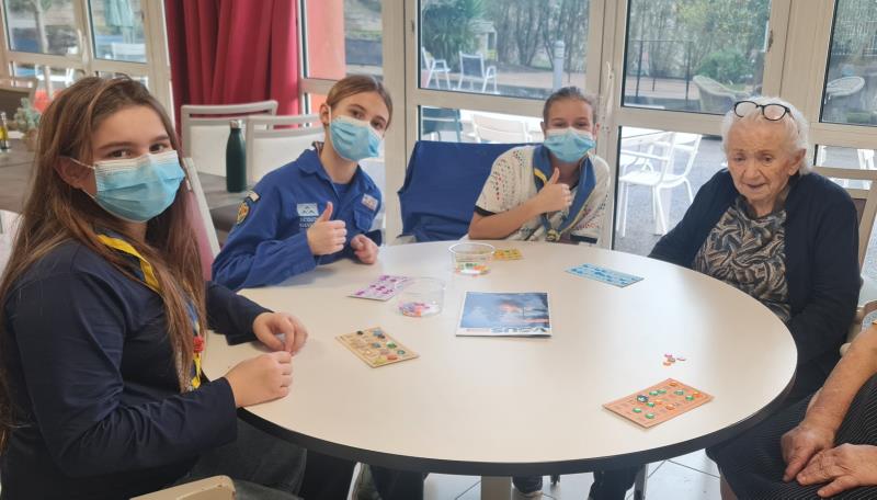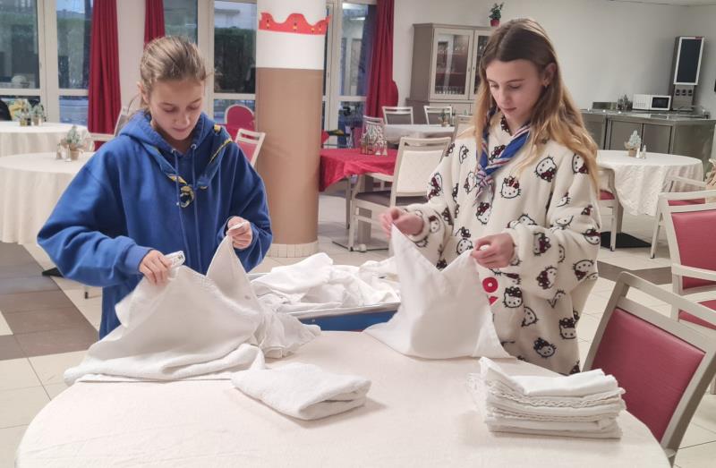 Ils ont participé aux activités du week-end le loto le samedi et les mîmes le dimanche ainsi qu'à la vie de l'EHPAD les filles se sont proposées pour le pliage des serviettes, nappes, draps....la distribution des plateaux repas dans les chambres